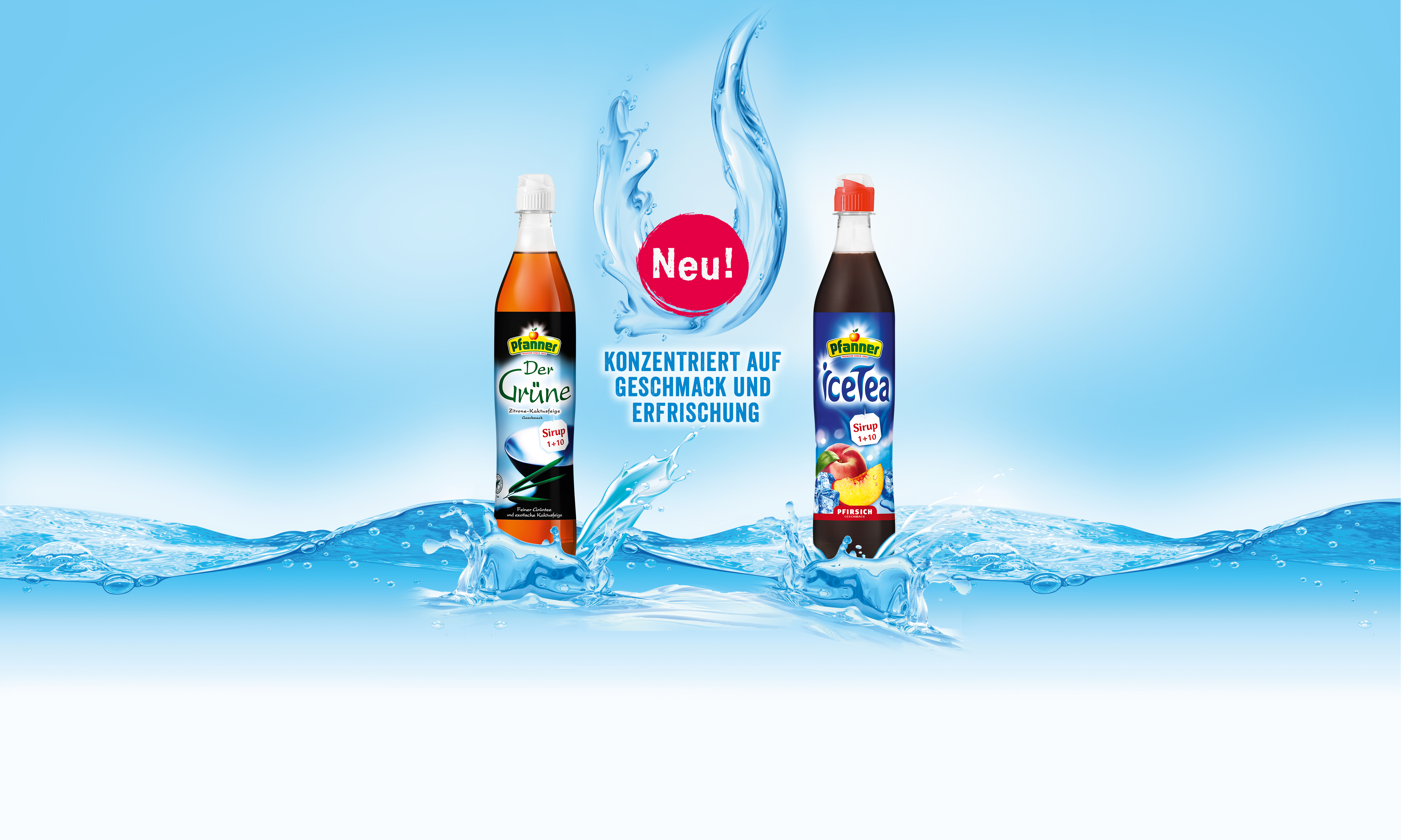 Pfanners beliebte Sorten "Eistee Pfirsich" und "Grüner Tee Zitrone-Kaktusfeige" können ab sofort als Sirup-Variante auch zuhause zubereitet werden. Ganz nach eigenem Geschmack!