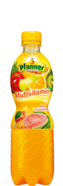 12 Früchte sind die Basis für das Pfanner Multivitamin-Mehrfruchtsaftgetränk. Der aufmunternde Erfrischungsdrink für Schule, Sport und Freizeit deckt 15% der empfohlenen Tagesdosis für die Vitamine A+C+E.