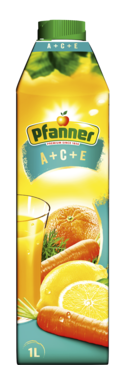 Frische Äpfel, saftige Orangen, spritzige Zitronen und beste Karotten prägen den fruchtigen Geschmack von Pfanner ACE Mehrfrucht. Die ausgezeichnete Kombination von Frucht und Gemüse sorgt für den unvergleichlichen Geschmack dieses Vitamincocktails. Bereits ein Glas von 200 ml deckt 60% des Tagesbedarfs an den Vitaminen A, C und E.