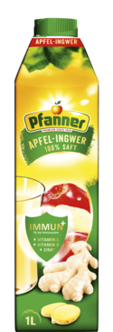 Für Pfanner Apfel-Ingwer vereinen wir einen fruchtigen Klassiker mit einem würzigen Exoten: Sonnengereifte, saftige Äpfel gehen mit aromatischem Ingwer eine harmonische Liaison ein. Die Ingwerwurzel gilt als altbewährtes Hausmittel und zählt heute zu den Helden der modernen Küche.