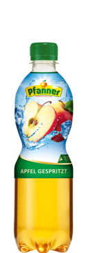 Pfanner Apfel Gespritzt enthält mindestens 55% Apfelsaft aus Apfelsaftkonzentrat und spritzige Kohlensäure. Der Klassiker unter den Durstlöschern eignet sich ideal für Sport und Freizeit, Schule und Büro.