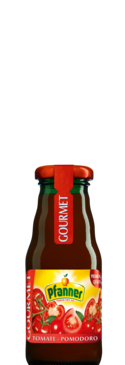 Für Pfanner Gourmet Tomate werden sonnenverwöhnte Tomaten fein püriert. Leicht gesalzen schmeckt der Tomatensaft mit einem Saftgehalt von 100% sowohl fruchtig als auch würzig zugleich.