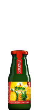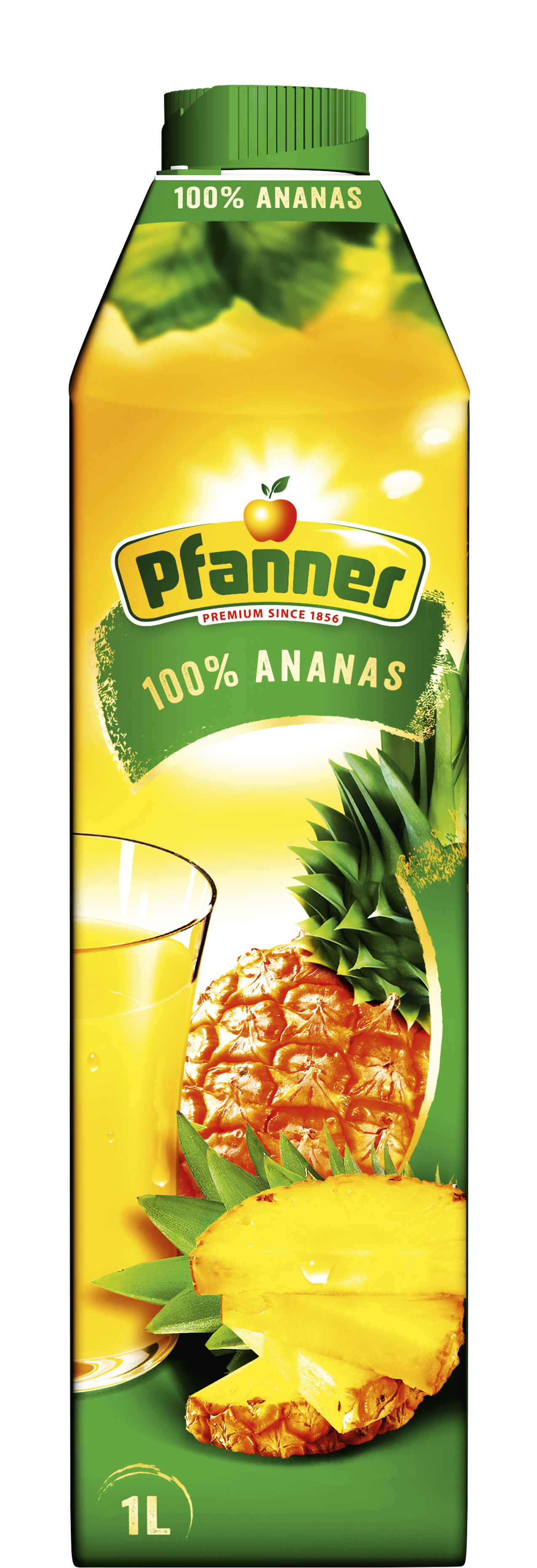 Wegen ihrer „Krone“ wird die Ananas als „Königin der Tropenfrüchte“ bezeichnet. Zurecht: Ihr saftiges, leuchtend gelbes Fruchtfleisch schmeckt unvergleichlich aromatisch. Pfanner Gourmet Ananassaft besitzt einen Fruchtgehalt von 100%.