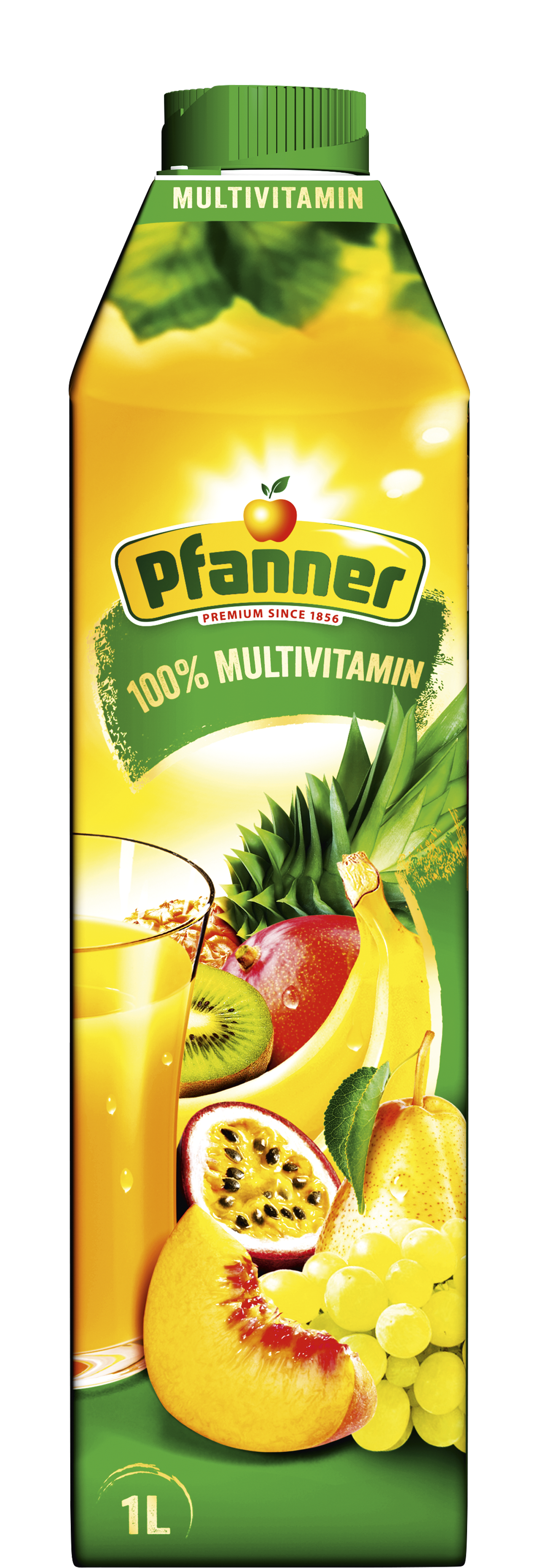 Pfanner Gourmet Multivitamin ist ein Mehrfruchtsaft mit einem Fruchtgehalt von 100%. 13 köstliche Fruchtsorten werden zu einem fein abgestimmten Genusserlebnis mit 9 wertvollen Vitaminen kombiniert.