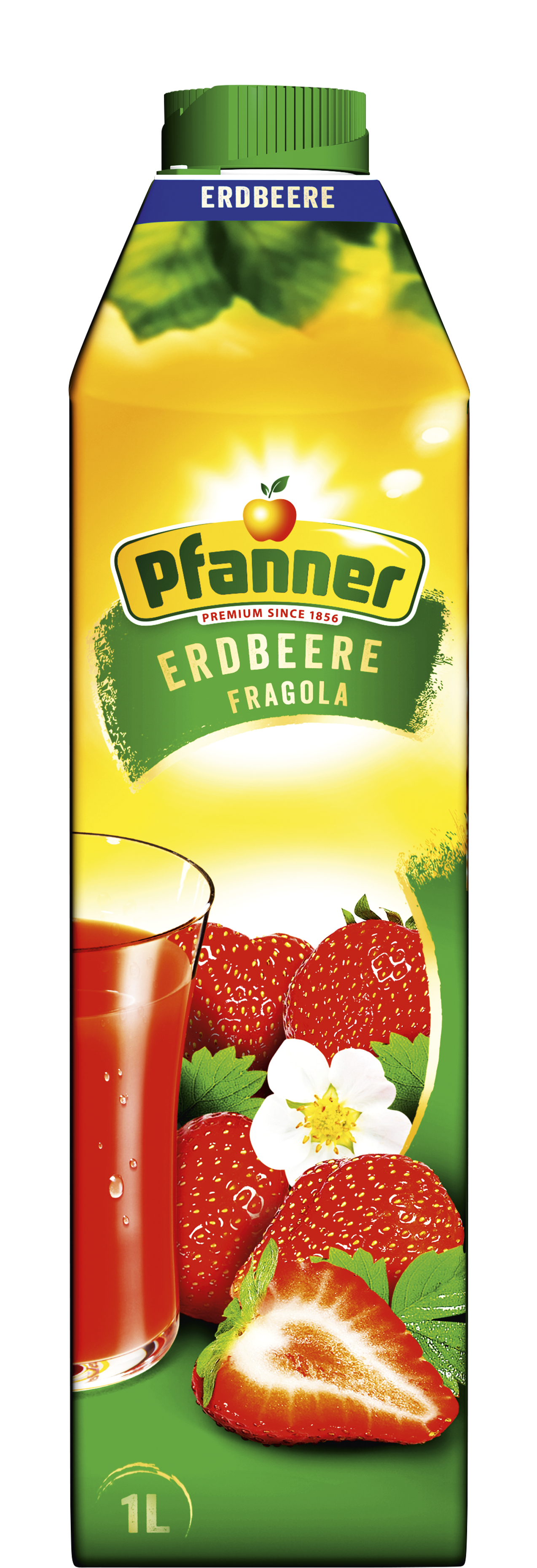 Das intensive, fruchtige Aroma und das leuchtende Rot machen die Erdbeere zur „Königin des Gartens“. Feines Erdbeermark – überwiegend aus eigener Verarbeitung – ist die Grundlage für unser köstlich-sämiges Fruchtsaftgetränk. Wir empfehlen Pfanner Erdbeere als Genussgetränk oder als Fruchtbasis für Mixgetränke und Cocktails.